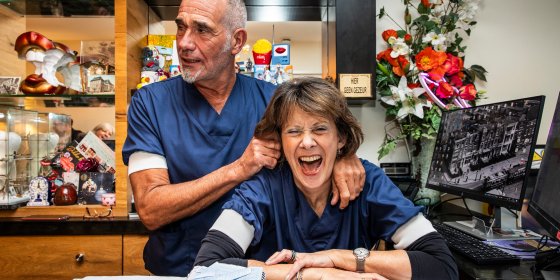 Plus Reportage Lachen, gieren, vullen: tandarts Wouter Vriesman wil het ‘een beetje leuk maken’ voor zijn patiënten Lachen, gieren, vullen: tandarts Wouter Vriesman wil het ‘een beetje leuk maken’ voor zijn patiënten