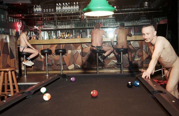 Plus Reportage In café Free Willie is naakt de norm: ‘Zonder kleding is het veel makkelijker om met anderen te praten’ In café Free Willie is naakt de norm: ‘Zonder kleding is het veel makkelijker om met anderen te praten’