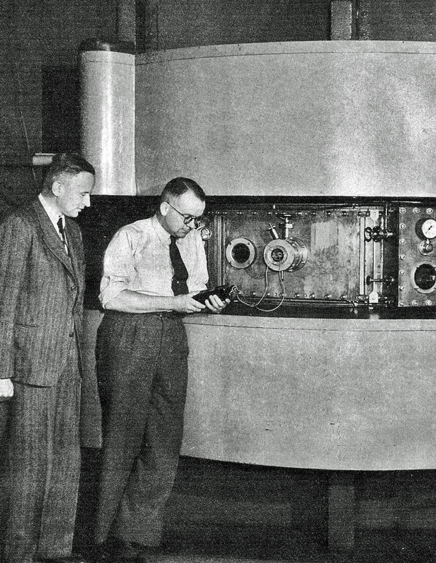 De ingebruikname van het synchrocyclotron op 10 november 1949 was voorpaginanieuws. De Waarheid kopte: ‘Atoombombardementen in de Watergraafsmeer.’ Eind november mocht de pers langskomen. ‘Stelt u zich geen imposante gebouwen, monsters van staal en beton, driedubbele versperringen van geëlectrificeerd draad en gewapende schildwachten daarbij voor. Want de atoomcentrale van Nederland ligt practisch in de stad Amsterdam, heel gemoedelijk bij de Valentijnkade en de tuinvereniging Molukken.’ Veiligheid was een belangrijke kwestie. De ‘atoomsplitsingscentrale’ was van de rest van het gebouw afgeschermd door een anderhalve meter dikke, holle muur, gevuld met water, ter bescherming van de medewerkers en de buitenwereld.