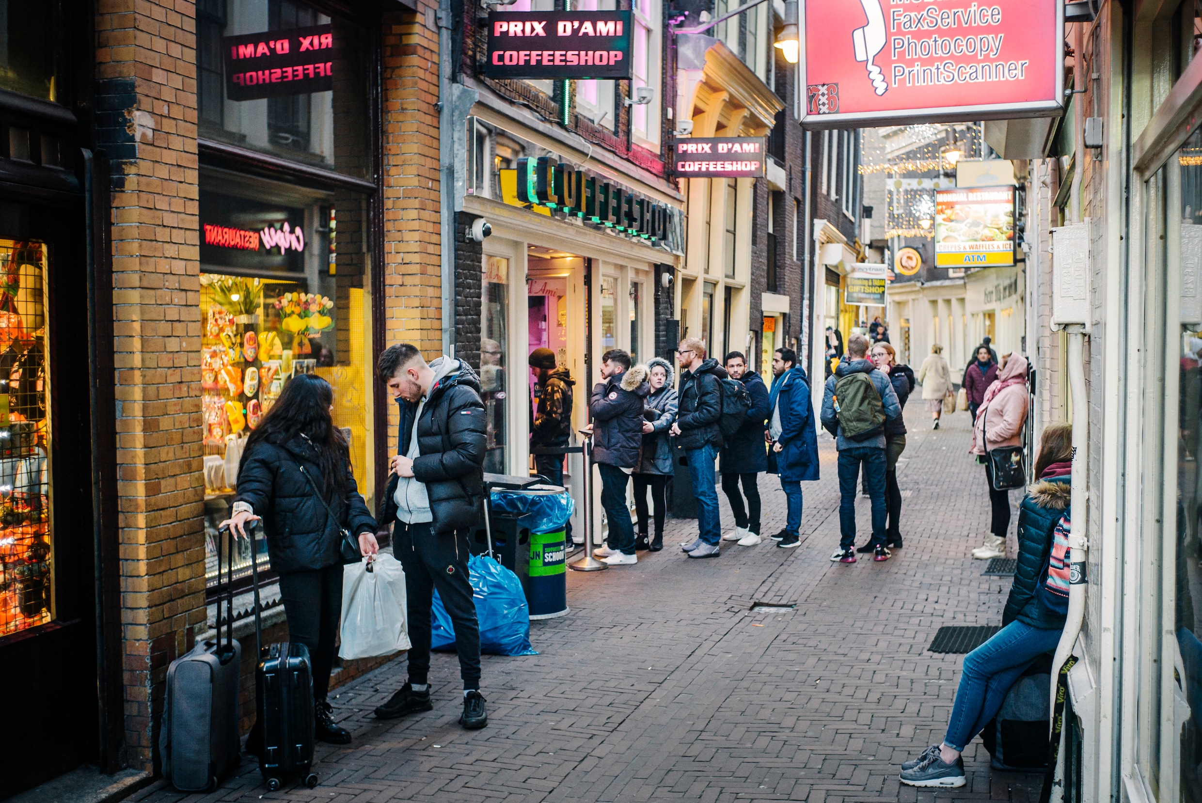 Drukte voor coffeeshop Prix D'ami Beeld Marc Driessen GroenLinks beweegt