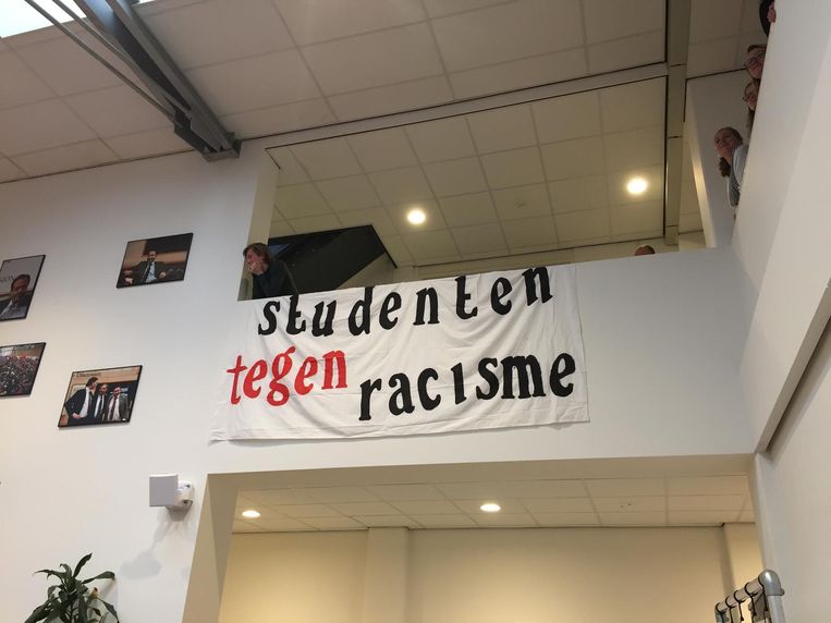 "Het is belangrijk dat de gedachtes van Thierry Baudet niet genormaliseerd worden," zegt student politicologie en Russisch Jens Appelo (20), die namens de ISA het woord voert. "Baudet ziet vrouwen en ook moslims als minderwaardig. De boodschap die hij verkondigt staat voor onderdrukking. Als je iemand met zulke meningen een podium biedt, respecteer je die mening."